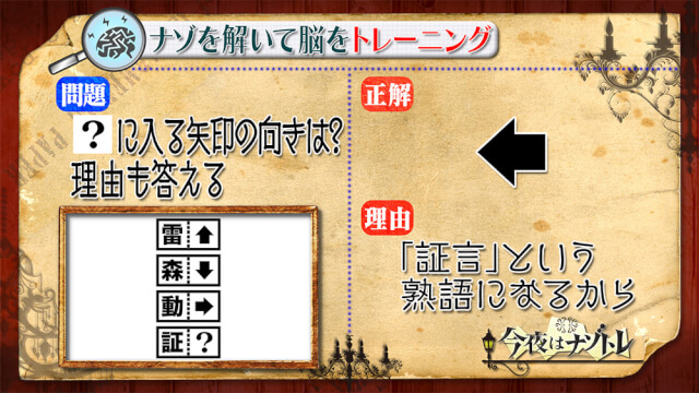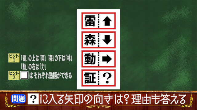 森+林で森林となり、動+力で動力となります。同じように考えていくと証+言で証言となりますよって答えは左矢印となります。